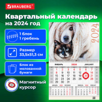 Календарь квартальный Brauberg Pets, 1 блок, 1 гребень, магнитный курсор, 2024