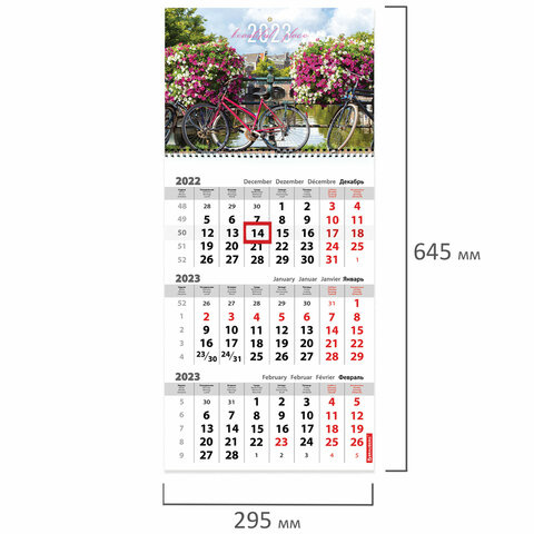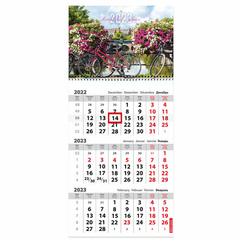 Календарь квартальный Brauberg Beautiful, 3 блока, 1 гребень, с бегунком, 2023