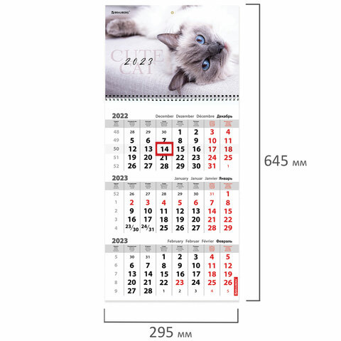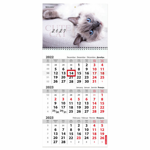 Календарь квартальный Brauberg Cute Cat, 3 блока, 1 гребень, с бегунком, 2023