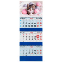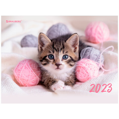 Календарь квартальный Brauberg Kitten, 3 блока, 3 гребня, с бегунком, 2023