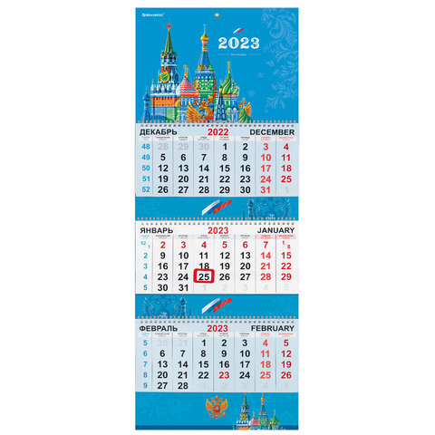 Календарь квартальный Brauberg Kremlin, 3 блока, 3 гребня, с бегунком, 2023