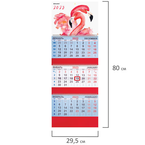 Календарь квартальный Brauberg Flamingo, 3 блока, 3 гребня, с бегунком, 2023
