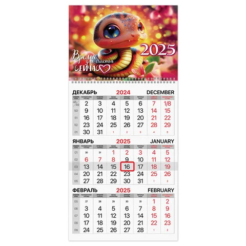 Календарь квартальный на 2025 г., 1 блок, 1 гребень, бегунок, мелованная бумага, BRAUBERG, 'Змейка',