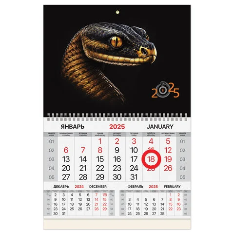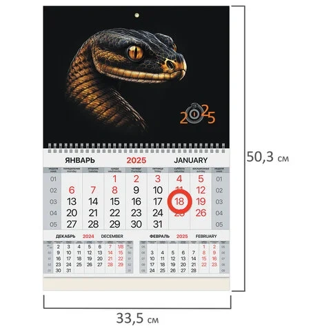 Офисный календарь на 2025 год на гребне. Состоит из 1 блока с календарными сетками на три месяца с магнитным курсором. Блок календаря напечатан на мелованной бумаге плотностью 80 г/м2. Подложка изготовлена из мелованного картона плотностью 250 г/м2. Магнитный курсор-бегунок выделяет текущую дату. Вертикальное расположение. Размер - 33,5х50,3 см.