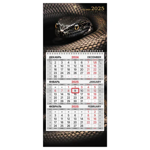 Календарь квартальный на 2025 г., 1 блок, 1 гребень, с бегунком, МИНИ, офсет, BRAUBERG, 'Символ года