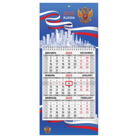 Календарь квартальный на 2025 г., 1 блок, 1 гребень, с бегунком, МИНИ, офсет, BRAUBERG, 'Символика',
