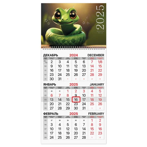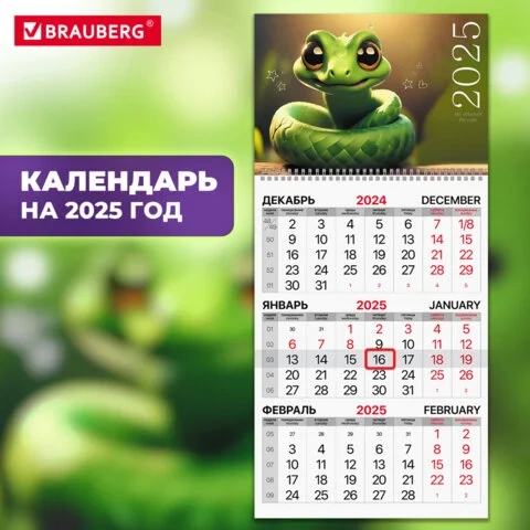 Календарь квартальный на 2025 г., 1 блок, 1 гребень, с бегунком, офсет, BRAUBERG, 'Символ года', 116