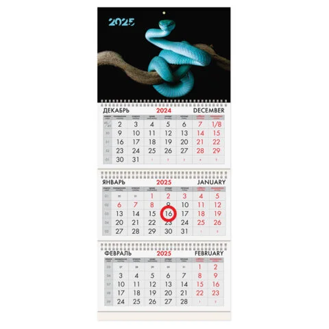 Офисный календарь на 2025 год на 3-х гребнях. Для удобства планирования состоит из 3-х блоков с календарными сетками на три месяца - предыдущий, текущий и последующий. Блок календаря напечатан на мелованной бумаге плотностью 80 г/м2. Подложка изготовлена из мелованного картона плотностью 250 г/м2. Магнитный курсор-бегунок выделяет текущую дату. Вертикальное расположение. Размер – 29,5х69,4 см.