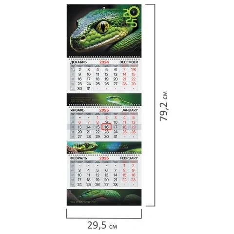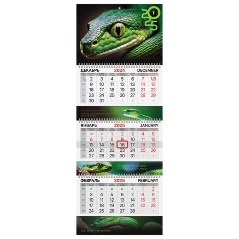 Офисный календарь на 2025 год на 3-х гребнях. Для удобства планирования состоит из 3-х блоков с календарными сетками на три месяца – предыдущего, текущего и последующего. Блок календаря напечатан на мелованной бумаге плотностью 80 г/м2. Подложка изготовлена из мелованного картона плотностью 250 г/м2 и имеет тематический рисунок, перекликающийся с постером.
