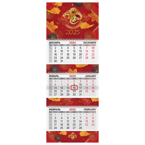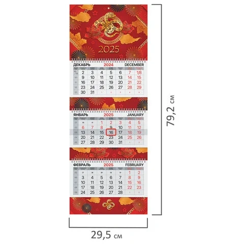 Офисный календарь на 2025 год на 3-х гребнях. Для удобства планирования состоит из 3-х блоков с календарными сетками на три месяца – предыдущего, текущего и последующего. Блок календаря напечатан на мелованной бумаге плотностью 80 г/м2. Подложка изготовлена из мелованного картона плотностью 250 г/м2 и имеет тематический рисунок, перекликающийся с постером.