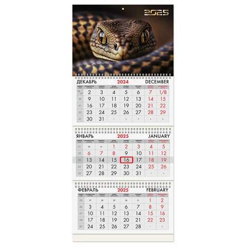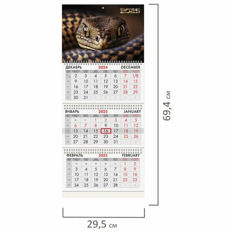 Офисный календарь на 2025 год на 3-х гребнях. Для удобства планирования состоит из 3-х блоков с календарными сетками на три месяца – предыдущего, текущего и последующего. Блок календаря напечатан на мелованной бумаге плотностью 80 г/м2. Подложка изготовлена из мелованного картона плотностью 235 г/м2. Курсор-бегунок выделяет текущую дату. Вертикальное расположение.