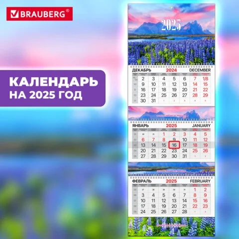 Календарь квартальный на 2025 г., 3 блока, 3 гребня, с бегунком, мелованная бумага, EXTRA, BRAUBERG,
