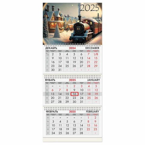 Календарь квартальный на 2025 г., 3 блока, 3 гребня, с бегунком, офсет, BRAUBERG, 'Паровозик', 11610