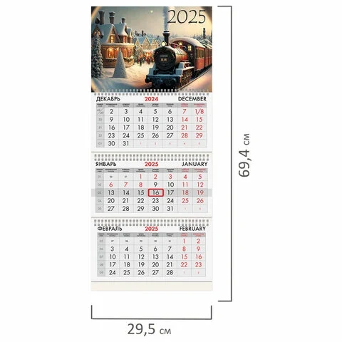 Офисный календарь на 2025 год на 3-х гребнях. Для удобства планирования состоит из 3-х блоков с календарными сетками на три месяца - предыдущего, текущего и последующего. Блок календаря напечатан на офсетной бумаге плотностью 65 г/м2. Подложка изготовлена из мелованного картона плотностью 235 г/м2. Курсор-бегунок выделяет текущую дату. Вертикальное расположение.