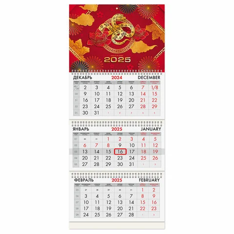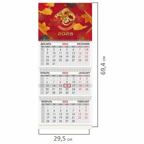 Календарь квартальный на 2025 г., 3 блока, 3 гребня, с бегунком, офсет, BRAUBERG, 'Символ года восто