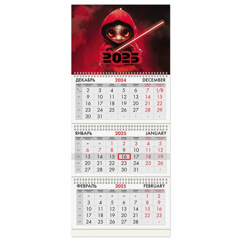 Офисный календарь на 2025 год на 3-х гребнях. Для удобства планирования состоит из 3-х блоков с календарными сетками на три месяца - предыдущего, текущего и последующего. Блок календаря напечатан на офсетной бумаге плотностью 65 г/м2. Подложка изготовлена из мелованного картона плотностью 235 г/м2. Курсор-бегунок выделяет текущую дату. Вертикальное расположение.