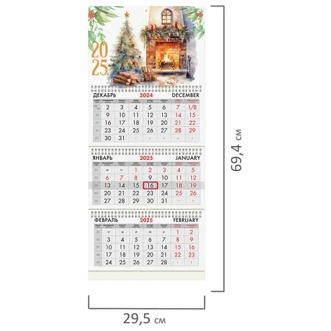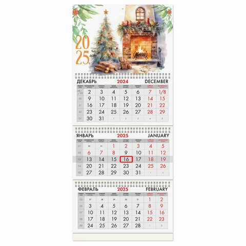 Офисный календарь на 2025 год на 3-х гребнях. Для удобства планирования состоит из 3-х блоков с календарными сетками на три месяца - предыдущего, текущего и последующего. Блок календаря напечатан на офсетной бумаге плотностью 65 г/м2. Подложка изготовлена из мелованного картона плотностью 235 г/м2. Курсор-бегунок выделяет текущую дату. Вертикальное расположение.
