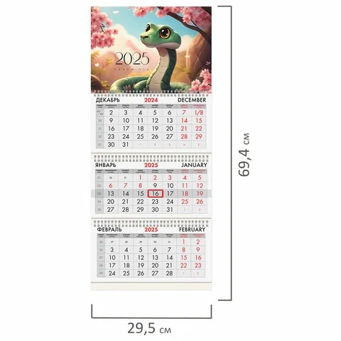Календарь квартальный на 2025 г., 3 блока, 3 гребня, с бегунком, офсет, BRAUBERG, 'Змейка', 116095