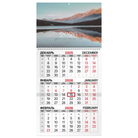 Календарь квартальный на 2026 г., 1 блок, 1 гребень, бегунок, мелованная бумага, BRAUBERG, 'Горное о