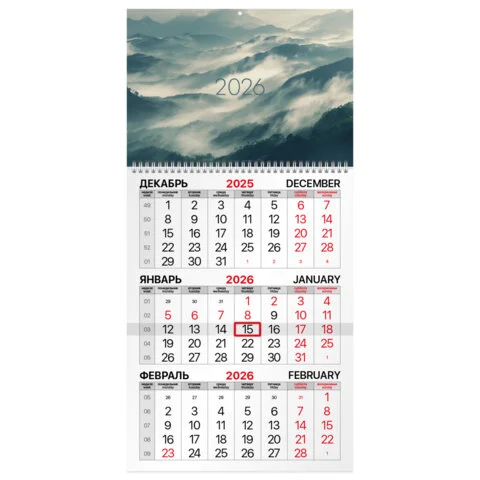 Календарь квартальный на 2026 г., 1 блок, 1 гребень, бегунок, офсет, BRAUBERG, 'Горы', 116742