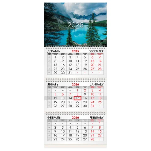 Календарь квартальный на 2026 г., 3 блока, 3 гребня, бегунок, мелованная бумага, BRAUBERG, 'Горное о