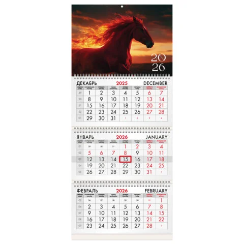 Календарь квартальный на 2026 г., 3 блока, 3 гребня, бегунок, офсет, BRAUBERG, 'Символ года', 116759