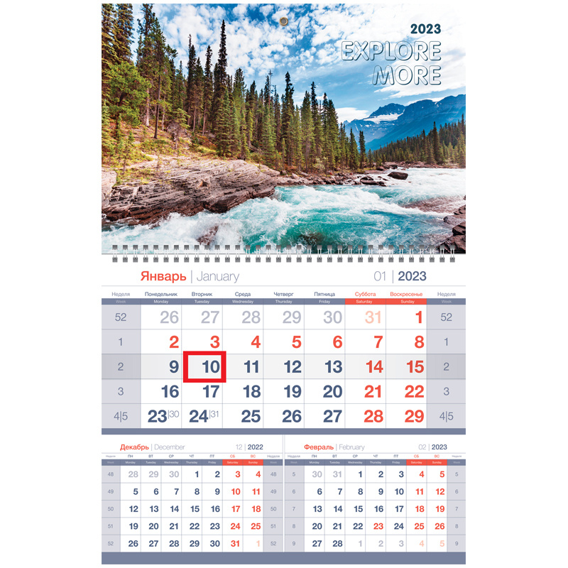 Календарь квартальный Officespace Mono premium Explore more, 1 блок, 1 гребень, с бегунком, 2023
