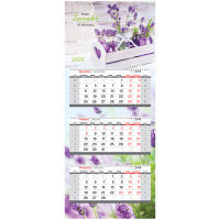 Календарь квартальный Officespace Premium Lavender waves, 3 блока, 3 гребня, с бегунком, 2023