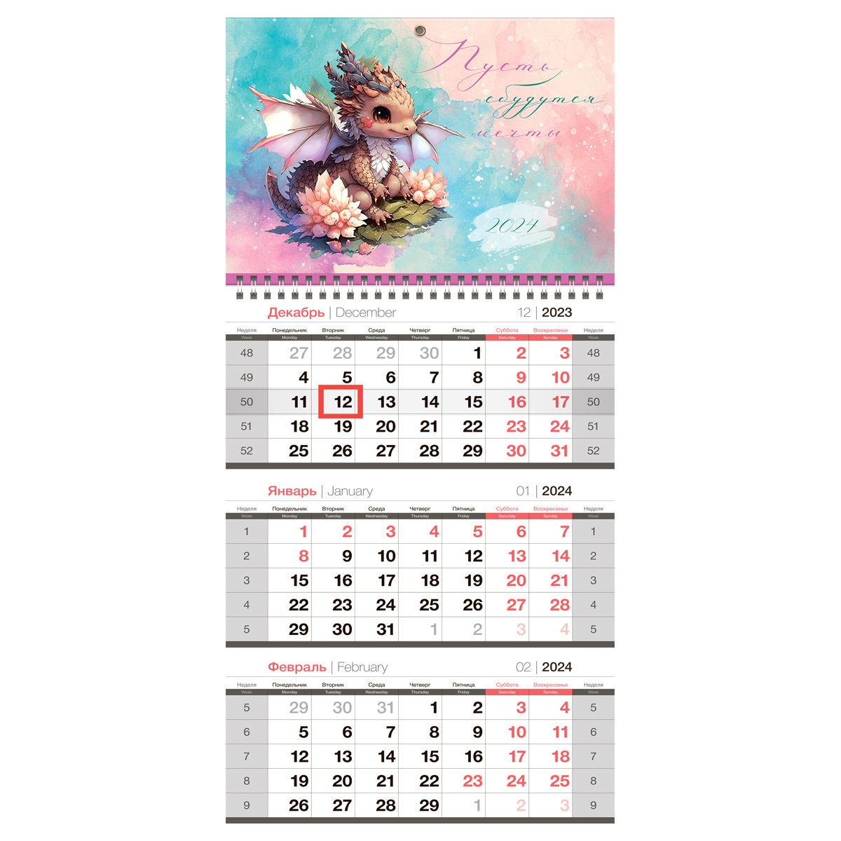 Календарь квартальный OfficeSpace «Символ года» на 2024 год – незаменимая вещь в жизни делового человека и отличный помощник для офиса. Размер вертикального календаря – 295*650 мм. Календарный блок изготовлен из офсетной белой бумаги плотностью 65 г\\м2 с печатью в 2 краски. Верхняя и нижняя подложки изготовлены из картона. Нижняя подложка имеет цветность в 1 краску, верхняя – полноцветная. Дизайн календаря идеален для офиса. Есть удобный бегунок-курсор и пикколо для подвески.