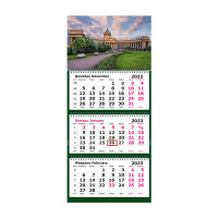 Общий размер календаря – 305х697, шпигель – формат 305х190, мелованный картон 300 г/кв.м., блок – формат 290х140, офсет 80 гр., печать в 2 цвета, крепление: каждая секция на мет. гребне, с бегунком и люверсом, индивидуальная упаковка.