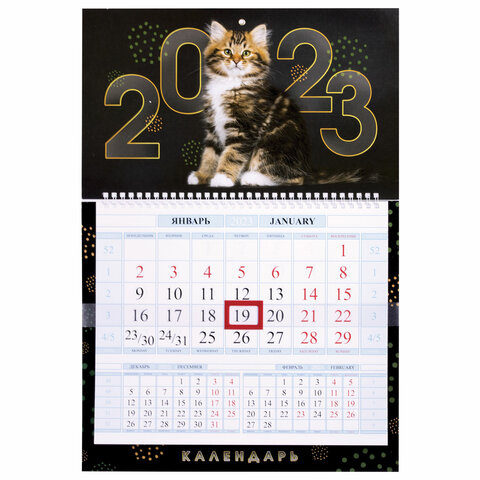 Календарь квартальный Hatber Соло-Люкс Кот круглый год, 1 блок, 1 гребень, с бегунком, 2023