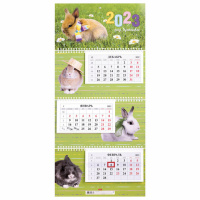 Календарь квартальный Hatber Экстра Год Кролика, 3 блока, 3 гребня, с бегунком, 2023