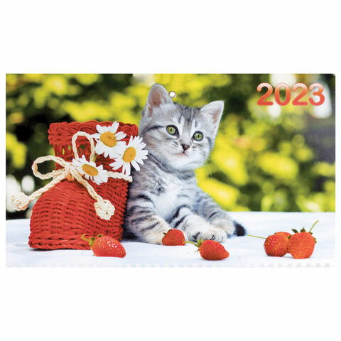 Календарь квартальный с бегунком 2023 г., 3 блока, 3 гребня, ОФИС, 'Котенок', HATBER, 3Кв3гр3_11865
