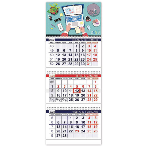 Календарь квартальный с бегунком 2023 г., 3 блока, 3 гребня, ОФИС, 'Мой офис', HATBER, 3Кв3гр3_27847