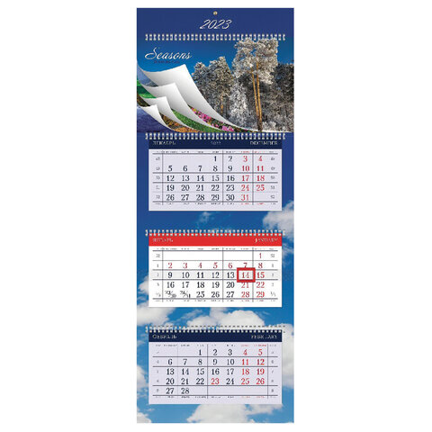 Календарь квартальный Hatber УльтраЛюкс Времена года, 3 блока, 4 гребня, с бегунком, 2023