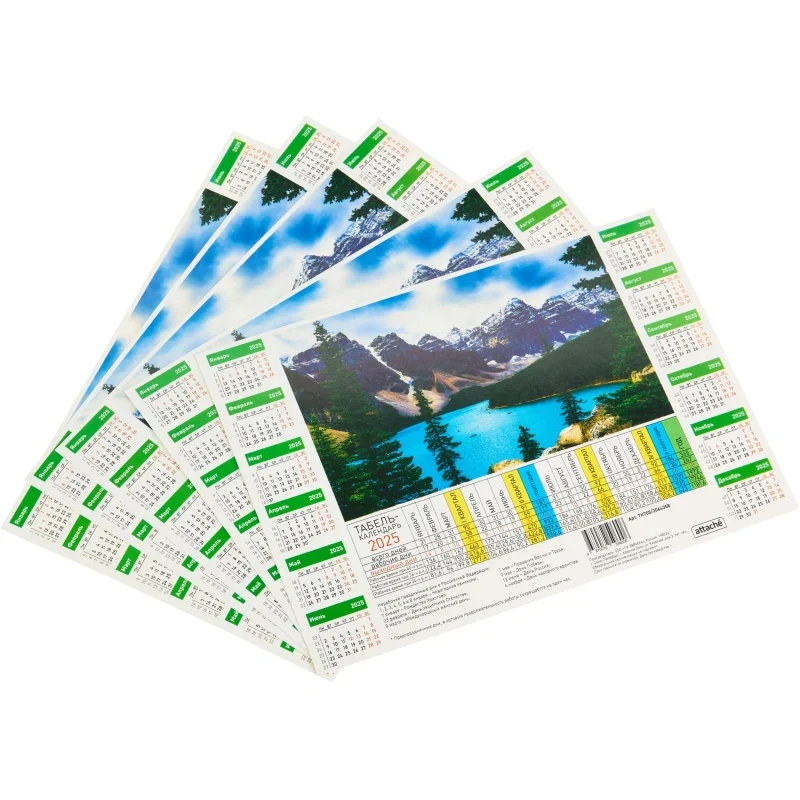 Календарь листовой 2025 Табель производственный, Природа 210х295, 5шт/уп