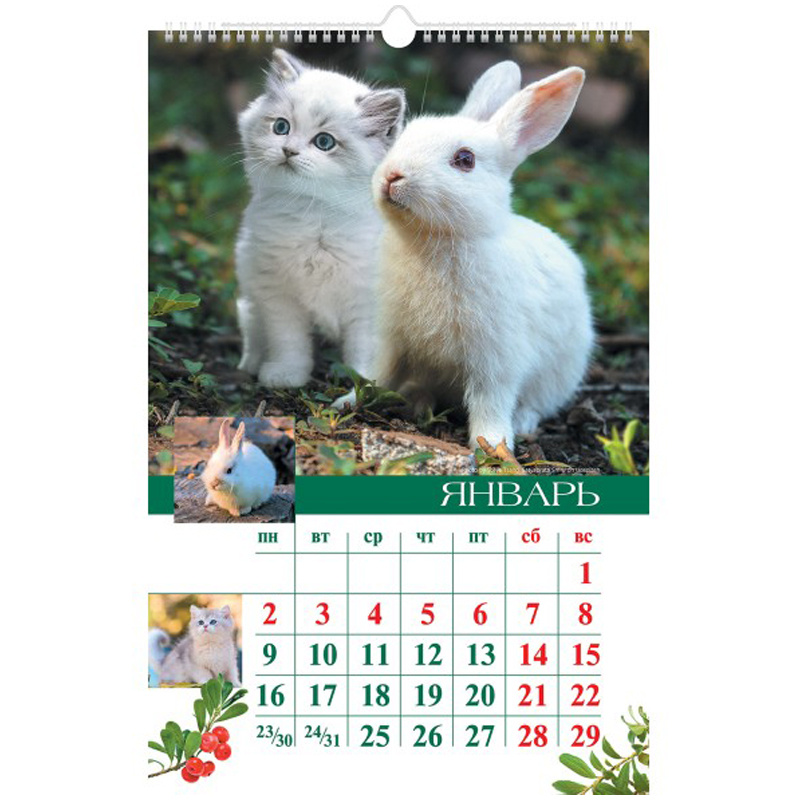 Календарь настен. перекид. на гребне Hatber 'ЛЮКС' - Знак года. Котята и крольчата, 30*45см, с ригел