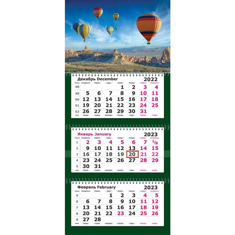 Календарь трехблочный Премиум на 2023 год «Полет на воздушном шаре» размером 330?710 мм состоит из красочного постера и трех блоков на подложках