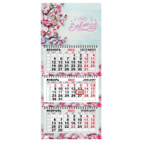 Календарь настенный 3-х блочный 2023 год Цветы заливка