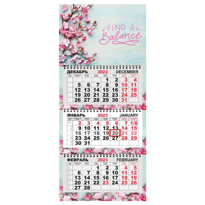 Большой настенный квартальный календарь размером 297?710 мм «Цветы» — многофункциональный помощник на 2023 год для дома и офиса. Красочный лакированный постер 297?220 мм. В конструкции календаря предусмотрено отверстие для крепления на стене — металлический люверс. Передвижной бегунок (курсор) используется для выделения текущей даты. Выходные и праздничные дни выделены красным цветом. Каждый календарь поставляется в упаковке.