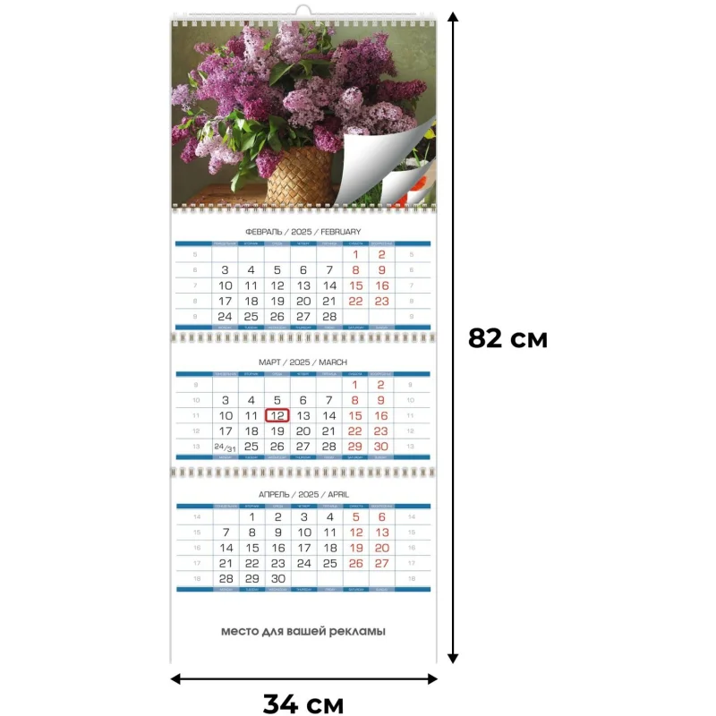 Календарь настенный 3-х блочный 2025 Букеты 340х820мм, 4 постера