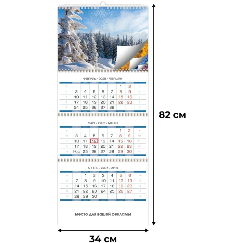 Календарь настенный 3-х блочный 2025 Родные просторы 340х820мм, 4 постера