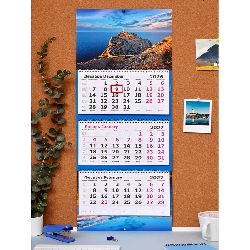 Календарь настенный 3-х блочный 2026-2027 Attache Переверт.два года,305х710