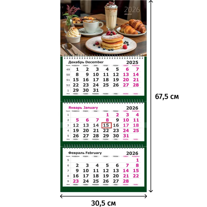 Календарь настенный 3-х блочный 2026 Attache, 305х675, Десерты, 80г