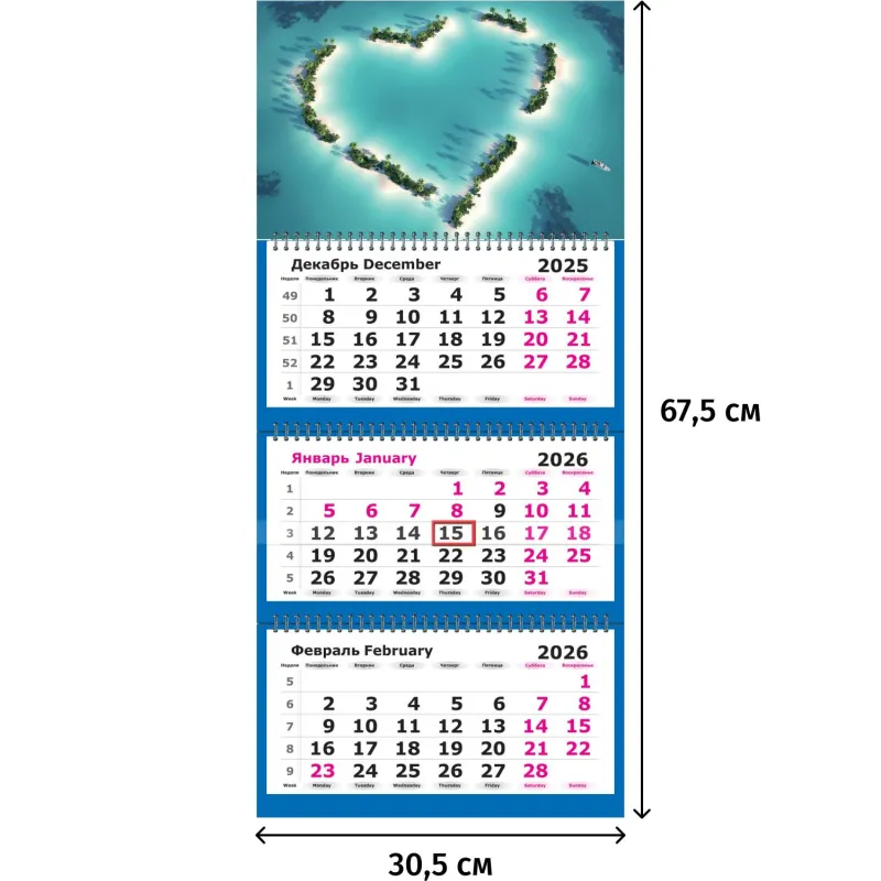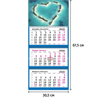 Календарь настенный 3-х блочный 2026 Сердце океана 30.5×67.5 см