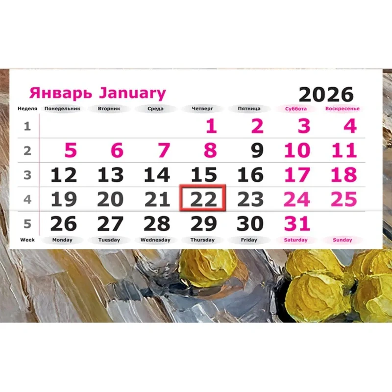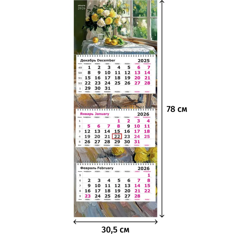 Календарь настенный 3-х блочный 2026 Букет 30.5×78 см