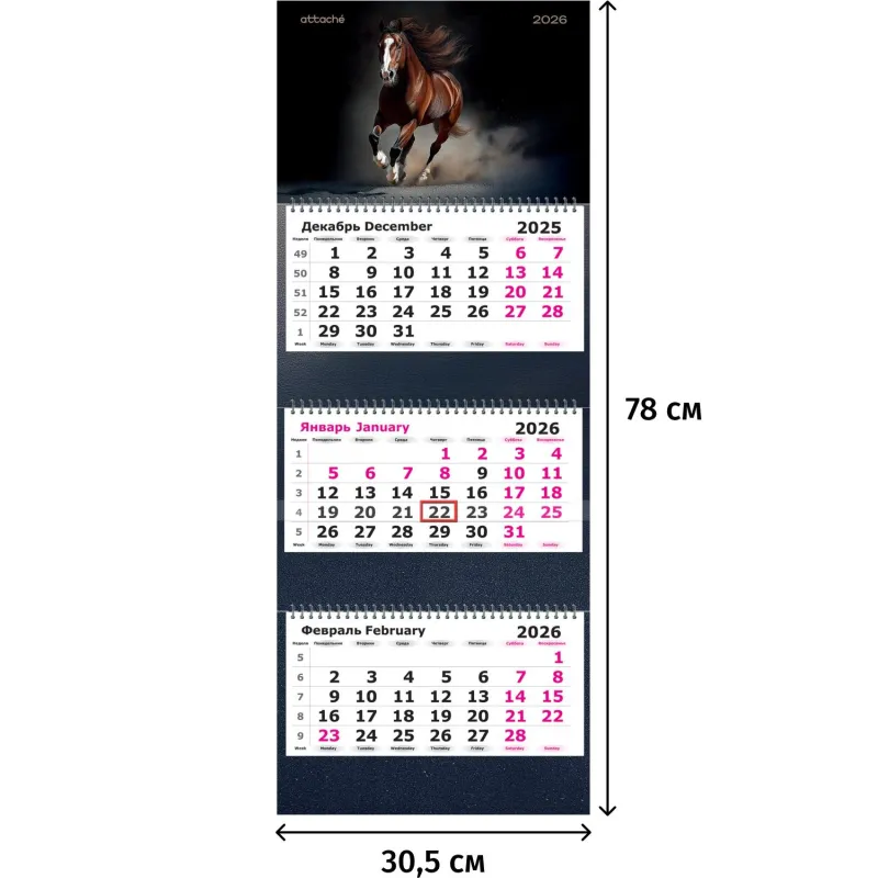 Календарь настенный 3-х блочный 2026 Attache, Галоп, 305х780, 80г