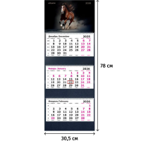 Календарь настенный 3-х блочный 2026 Галоп 30.5×78 см