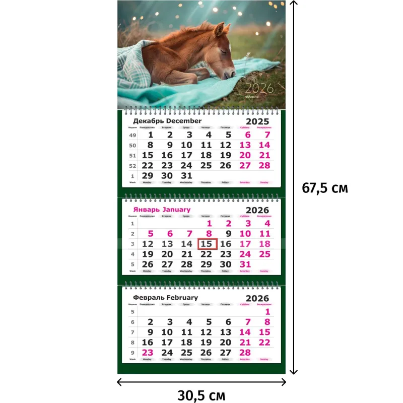 Календарь настенный 3-х блочный 2026 Attache, Трио станд, 305х675,Жеребенок