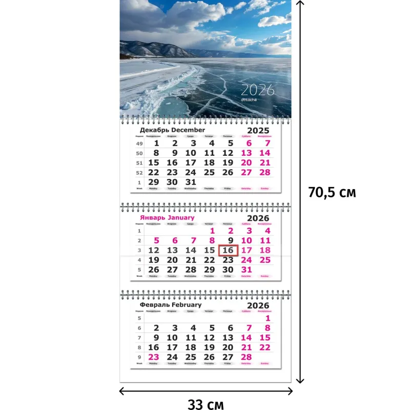 Календарь настенный 3-х блочный 2026 Байкал (33×70.5 см)